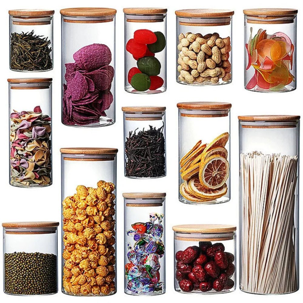 Glass Spice Jars with Airtight Bamboo Lids – Sealable Storage Containers for Home & Kitchen Organization